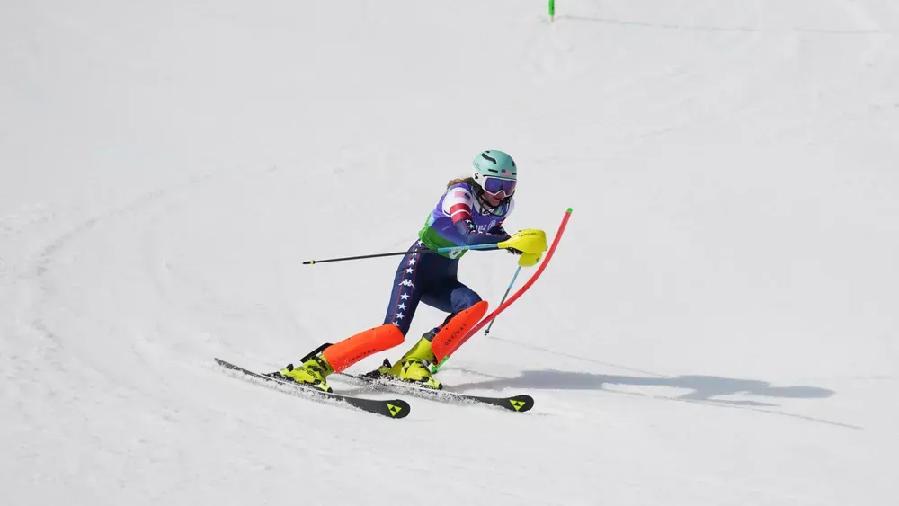 Meg Gustafson, of the United States, competes in the alpine skiing women's alpine combined VI slalom event at the 2026 Winter Paralympics, in Cortina d'Ampezzo, Italy, Tuesday, March 10, 2026. Photo Credit: AP Photo/Evgeniy Maloletka